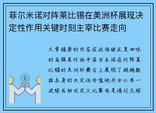 穆西亚拉在美洲杯赛场对阵阿森纳的表现,不仅展示了其卓越的个人能力,也深刻影响了比赛的战术布局和关键时刻的表现。本文将从四个方面对穆西亚拉在比赛中的统治力进行详细解析,探讨其如何在场上通过出色的技术、战术理解、比赛态度和关键时刻的表现,改变比赛走向并最终带领球队获得胜利。文章将逐步分析穆西亚拉如何通过...